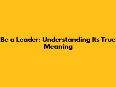 Be A Leader: Understanding Its True Meaning