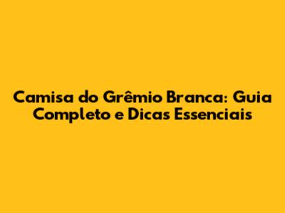 Camisa Do Grêmio Branca: Guia Completo E Dicas Essenciais