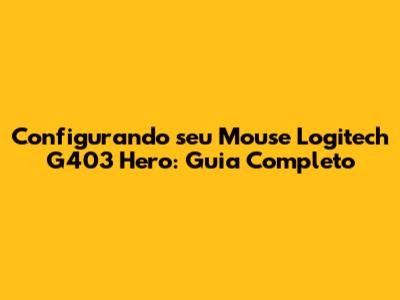 Configurando Seu Mouse Logitech G403 Hero: Guia Completo
