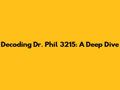 Decoding Dr. Phil 3215: A Deep Dive