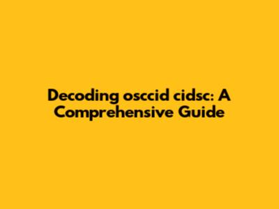 Decoding Osccid Cidsc: A Comprehensive Guide