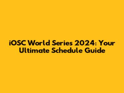 IOSC World Series 2024: Your Ultimate Schedule Guide
