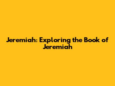 Jeremiah: Exploring The Book Of Jeremiah