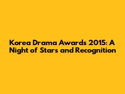 Korea Drama Awards 2015: Highlights And Winners