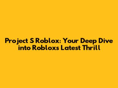Project S: Your Ultimate Guide To Roblox's Newest Adventure