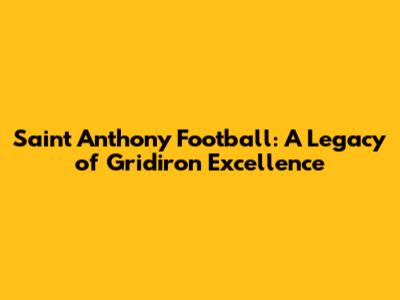 Saint Anthony Football: History, Players, And Achievements