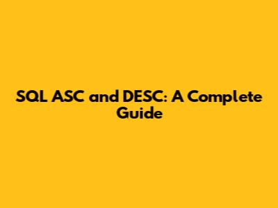 SQL ASC And DESC: A Complete Guide
