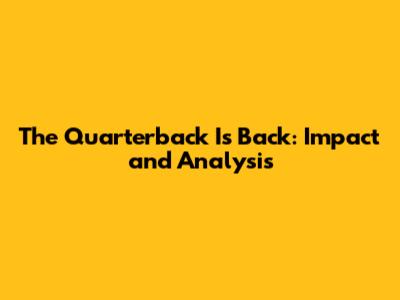 The Quarterback Is Back: Impact And Analysis
