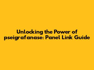 Demystifying the Panel Link: Your Gateway to Pseigrafanase